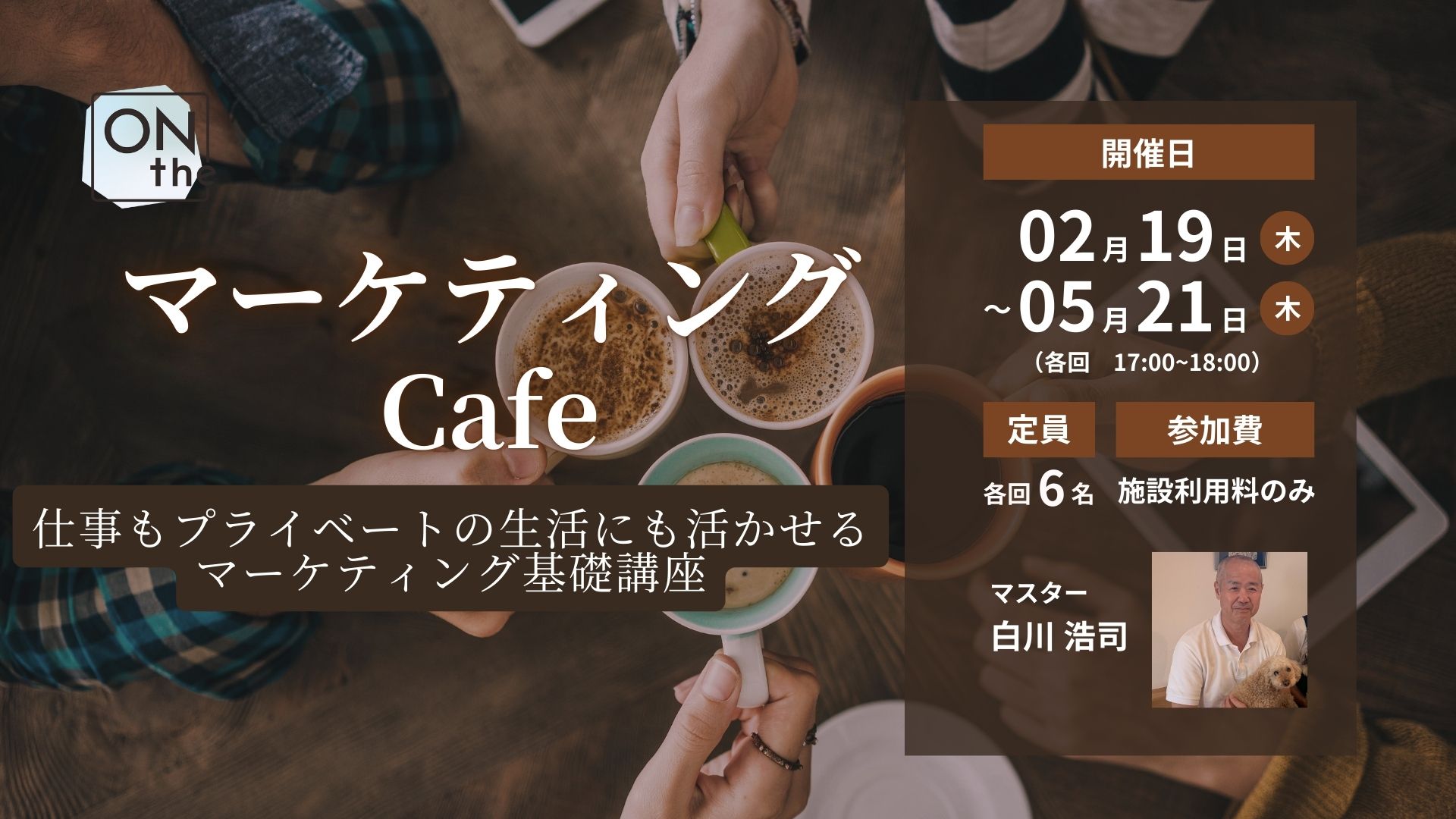 施設利用料のみ(非会員の方はドロップイン:10分/160円にてONtheにご入館ください)※初めてご利用される方は登録が必要です。身分証をご持参のうえ早めにお越しください
