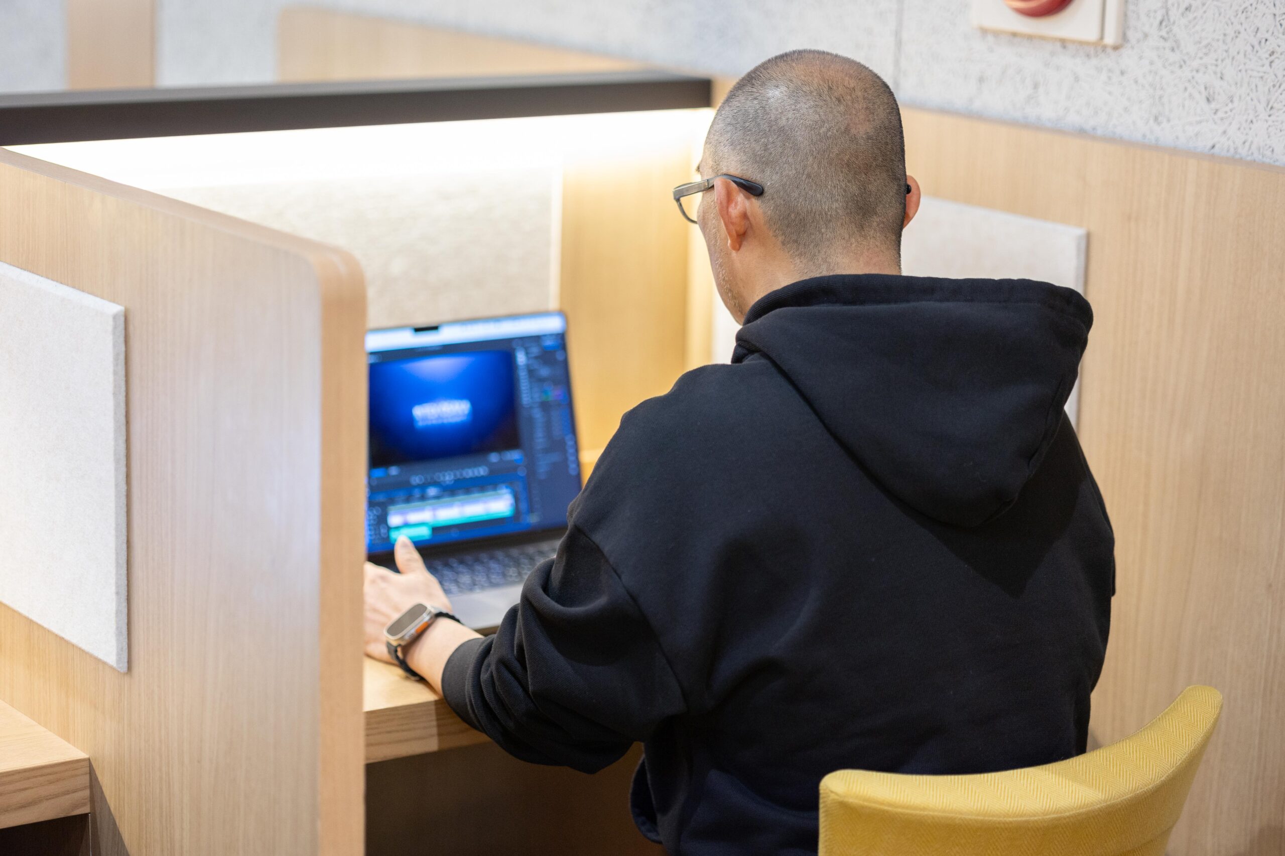 そして、ご利用されている方々と、いい意味での距離感があって使いやすいです。交流ができる場所では、ビジネスの話を断りにくい場面もあります。ここでは、そうしたしがらみがありません。人間関係に気を揉むことなく、自分のペースで作業に没頭できます。交流しないメリットと言えるかもしれませんね。
